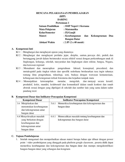 Rencana pelaksanaan pembelajaran (rpp) satuan pendidikan : Bapak ibu yang ingin rpp matematika kelas 9 kesebangunan dan kekongruenan kurikulum 2013 revisi 2019 silakan anda klik link download di . Berikut ini adalah salah satu perangkat. Hasil pembelajaran tentang kesebangunan dan kekongruenan dua bangun datar. Memahami kesebangunan bangun datar dan penggunaannya dalam.